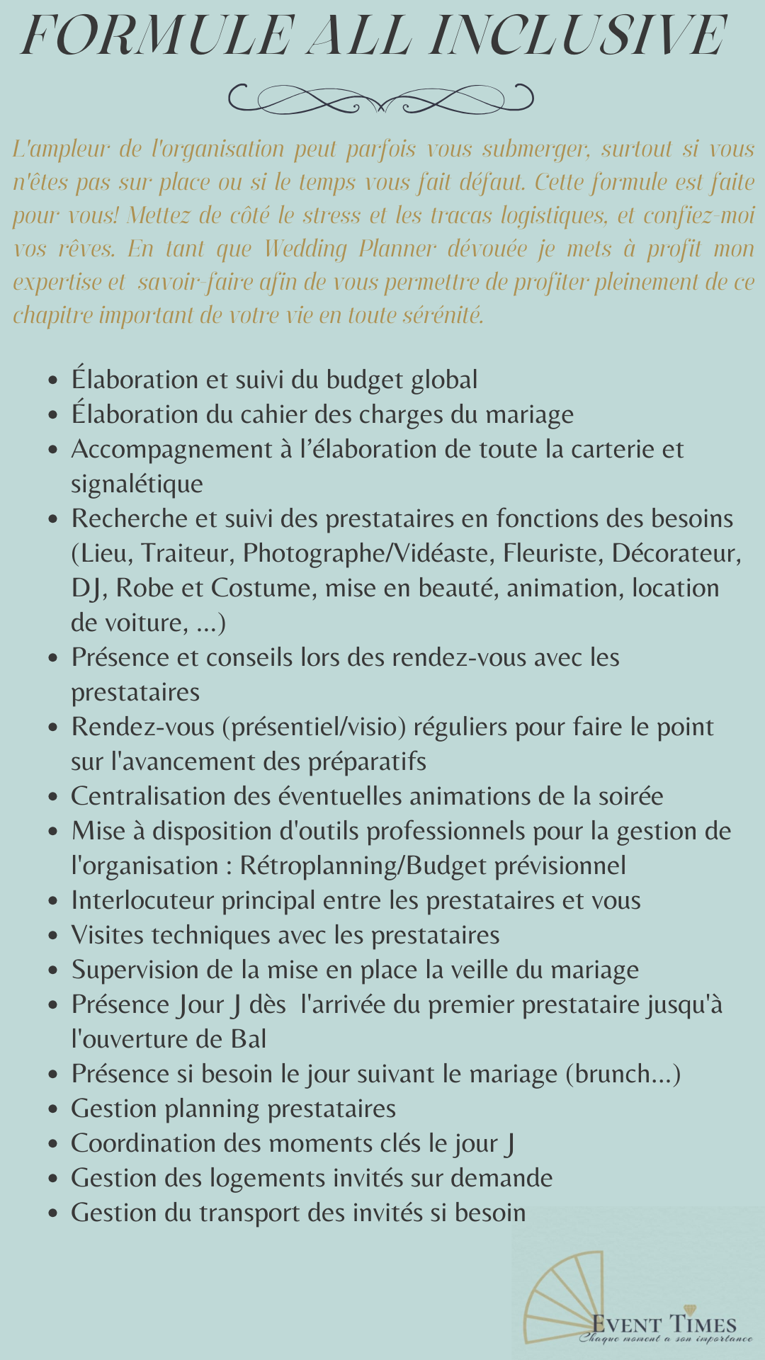 Chaque prestation est unique et entièrement personnalisée selon vos souhaits. Ces formules sont simplement des suggestions et peuvent être ajustées pour VOUS correspondre parfaitement ! Chaque devis est unique, tout comme chaque mariage, reflétant vos personnalités et vos désirs.